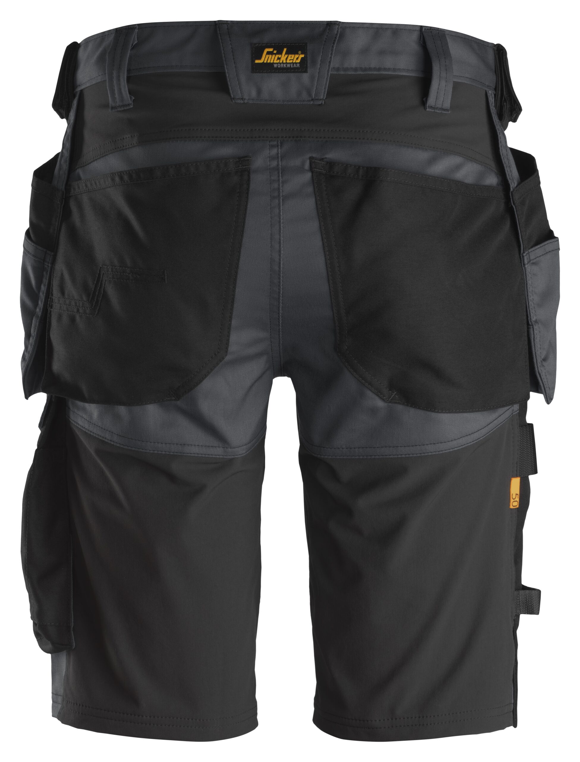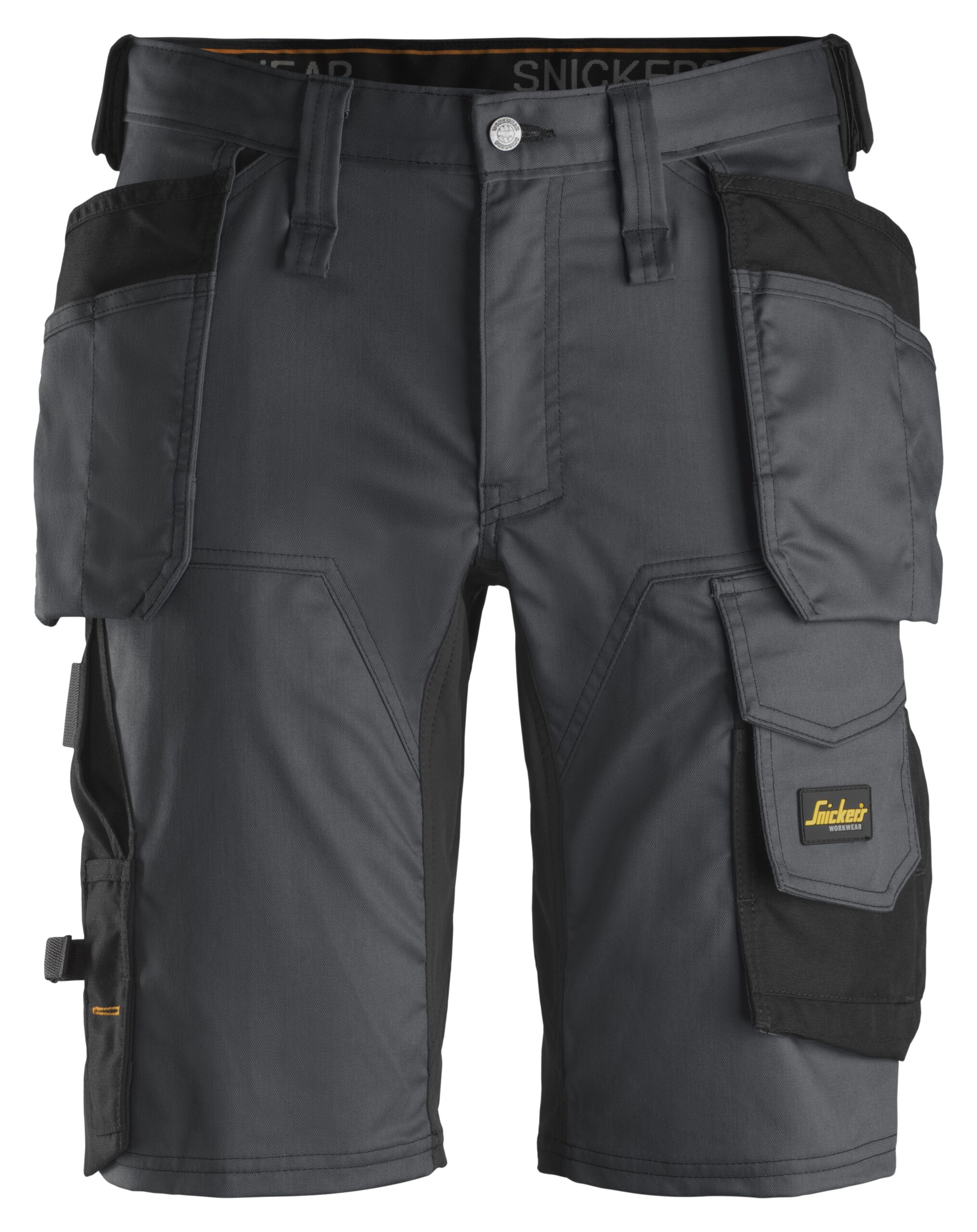 Snickers Workwear slim fit korte werkbroek van stretchmateriaal met holsterzakken, ontwikkeld voor intensief dagelijks gebruik. De pasvorm sluit goed aan en biedt veel bewegingsvrijheid tijdens het werk.